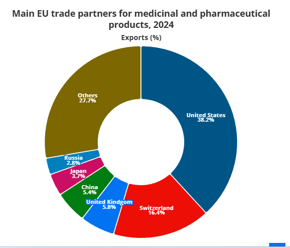 ПовСќС ΠΎΠ΄ Π΅Π΄Π½Π° Ρ‚Ρ€Π΅Ρ‚ΠΈΠ½Π° ΠΎΠ΄ ΠΈΠ·Π²ΠΎΠ·ΠΎΡ‚ Π½Π° фармацСвтски ΠΏΡ€ΠΎΠΈΠ·Π²ΠΎΠ΄ΠΈ ΠΎΠ΄ Π•Π£ ΠΎΠ΄ΠΈ Π²ΠΎ Π‘ΠΎΠ΅Π΄ΠΈΠ½Π΅Ρ‚ΠΈΡ‚Π΅ АмСрикански Π”Ρ€ΠΆΠ°Π²ΠΈ.